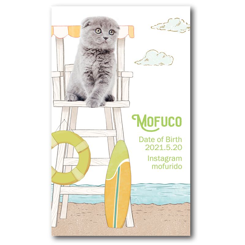 夏向け爽やか!ライフガードチェアデザインの長方形ペット名刺。